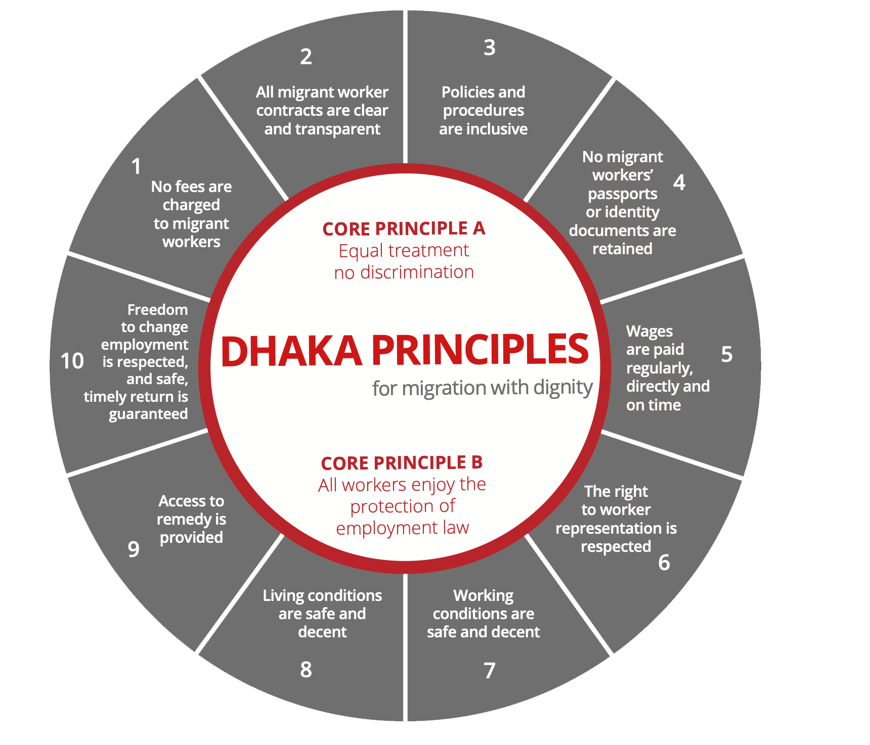 The Dhaka Principles provide a clear and practical framework for ensuring that migrant workers are recruited and employed with respect for their human rights and dignity throughout the entire migration cycle.